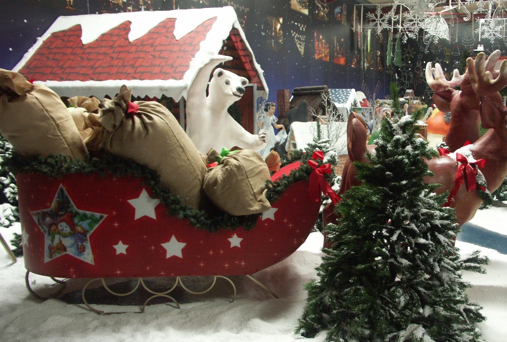 Χριστουγεννιάτικα σπιτάκια, άμαξες, καμπάνες, μολυβένιοι στρατιώτες μεγάλων διαστάσεων και δεκάδες άλλα στοιχεία έχουν μετατρέψει σε παραμυθένιο το χώρο.