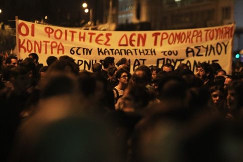 Περίπου 1.500 φοιτητές ξεκίνησαν από τα Προπύλαια και κατευθύνθηκαν προς τη Βουλή και από εκεί επιχειρούν να φτάσουν έως το Πολυτεχνείο.