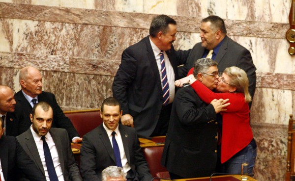 Το φιλί στο στόμα της Ελένης Ζαρούλια στον σύζυγό της Νίκο Μιχαλολιάκο ήταν από τις… στιγμές που έγραψαν κατά την πρώτη ψηφοφορία στη Βουλή για την εκλογή Προέδρου της Δημοκρατίας.