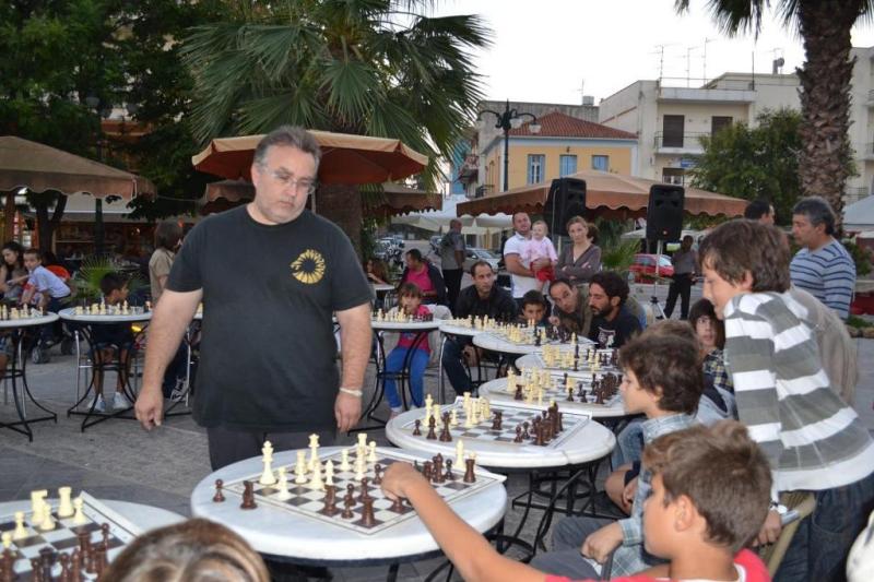 Μια διοργάνωση που ξεκίνησε στις 18.00 μμ στην πλατεία Αγ. Αθανασίου στην Αμαλιάδα με μεγάλη συμμετοχή από μικρούς και μεγάλους. Για 4 ώρες περίπου αντιμετώπιζε του αντιπάλους του ο FIDE National Instuctor κ. Σιγούρος Μιχάλης εκπροσωπώντας και αγωνιστικά αυτή την φορά την Σκακιστική Ακαδημία Πύργου ενώ για να μπορέσουν να παίξουν όσοι επιθυμούσαν οι διοργανωτές πρόσθεταν τραπέζια και σκακιέρες μεγαλώνοντας τον αρχικό αριθμό των ταυτόχρονων αντιπάλων .