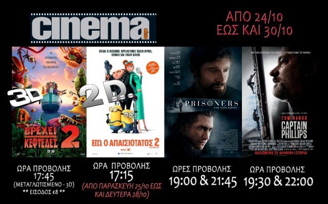 Τι προβάλλεται στον κινηματογράφο Cine Cinema Αμαλιάδας απο 24/10/2013 έως 30/10/2013.  Αναλυτικά το πρόγραμμα: