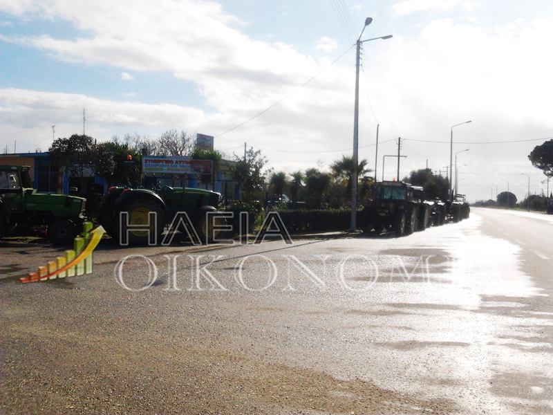 Στην Ηλεία το βασικό σημείο συγκέντρωσης των τρακτέρ είναι στην Ε.Ο Πατρών – Πύργου στο ύψος του ΔΔ Μαραθιάς.