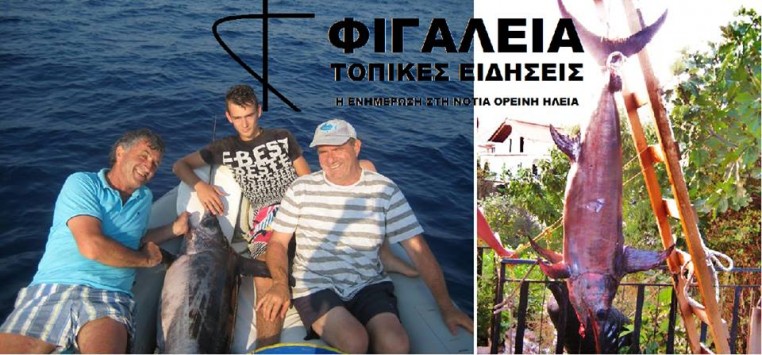 Τρείς ψαράδες απο την Φασκομηλιά Φιγαλείας ψάρεψαν πρίν λίγα εικοσιτετράωρα έναν ξιφία βάρους 100 κιλών και ύψους άνω των 2 μέτρων, ανοιχτά του Θολού.