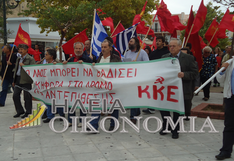 H Ν.Ε. Ηλείας του ΚΚΕ πραγματοποιεί αυτή τη στιγμή πορεία με συνθήματα και τραγούδια του ΕΑΜ στην κεντρική πλατεία Πύργου όπου θα πραγματοποιήσει και κατάθεση στεφανιών στο μνημείο Εθνικής Αντίστασης τιμώντας την επέτειο τις 28ης Οκτωβρίου.