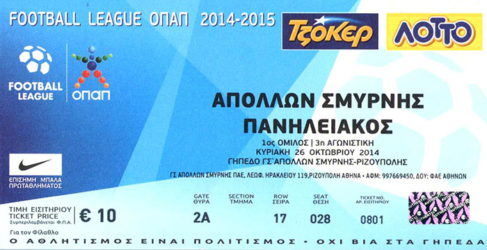 ΑΠΟΛΛΩΝ ΣΜΥΡΝΗΣ – ΠΑΝΗΛΕΙΑΚΟΣ   Κυριακή  (3.00)