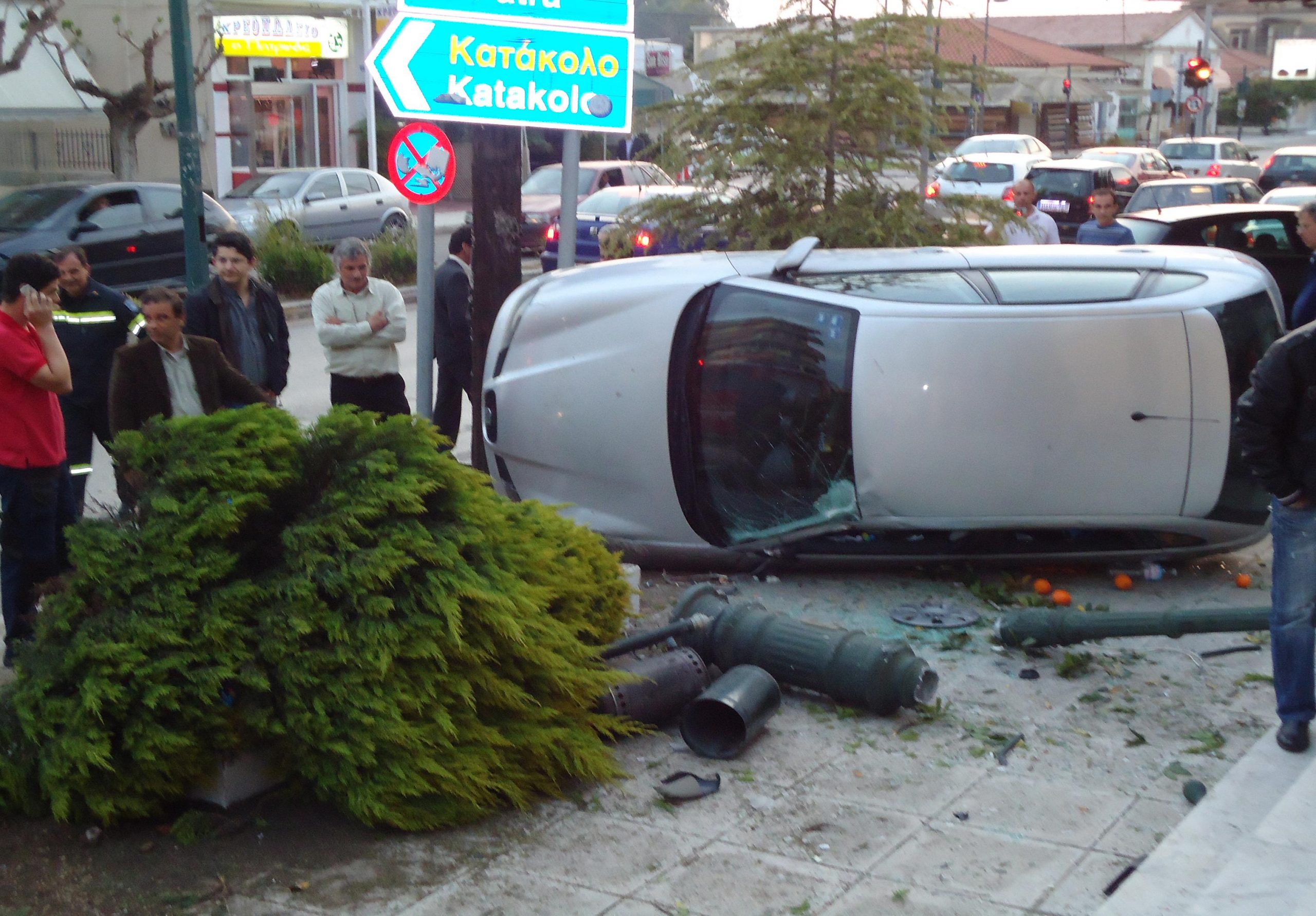 Η οδηγός του γκρι Seat έχασε τον έλεγχο του αυτοκινήτου της και αφού χτύπησε αρχικά σε στήλο του κεντρικού διαζώματος της οδού Πατρών κατευθύνθηκε προς το πεζοδρόμιο μπροστά από την εκκλησία της Αγίας Τριάδας Πύργου.