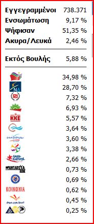 Εθνικές Εκλογές 20ής Σεπτεμβρίου 2015-Επικράτεια: Αναλυτικά Αποτελέσματα 99.51% (Συνεχής Ενημέρωση)