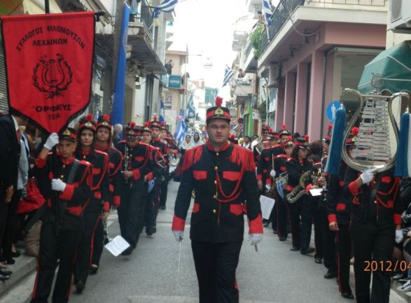 Η φιλαρμονική Λεχαινών στην παρέλαση στο Μεσολόγγι το 2012