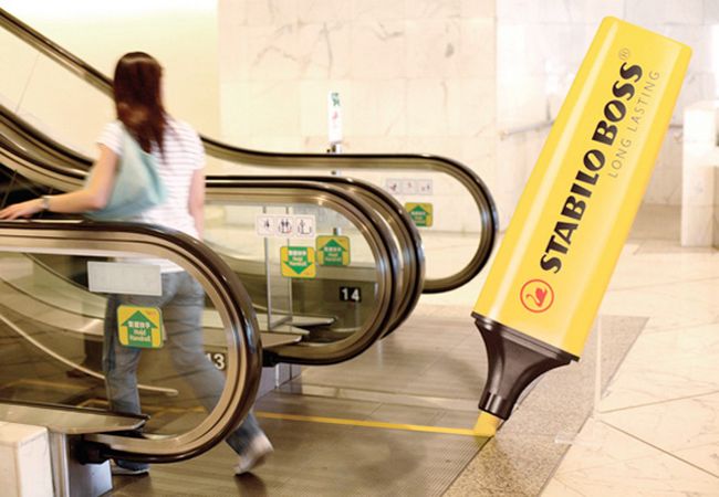 Όταν ο διαφημιστής έχει έμπνευση, το αποτέλεσμα είναι πρωτότυπες διαφημίσεις σε κυλιόμενες σκάλες. Στις συγκεκριμένες περιπτώσεις ο διαφημιστής εκμεταλλέυθηκε με πολύ έξυπνο τρόπο το φόντο αλλά και την κίνηση που παρέχουν οι σκάλες αυτές.