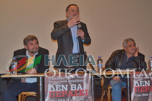 Αρχικά αναφέρθηκε την χαρά του που βρίσκεται στην Ηλεία, καθώς κατάγεται απο την Αμαλιάδα. Στην συνέχεια μίλησε για τους “πρόσφυγες Έλληνες” που καθημερινά αποφασίζουν να φύγουν απο την Ελλάδα για να βρουν δουλειά και καλύτερες συνθήκες διαβίωσης στο εξωτερικό. Ενώ η Ηλεία αποτελεί έναν φυσικό πλούτο δυστυχώς ρημάζεται. Αναφερόμενος στους αγρότες είπε οτι η κυβέρνηση τους κοροϊδεύει και δεν ικανοποιεί ουσιαστικά κρίσιμα αιτήματα των αγροτών που συνδυάζονται άμεσα με την αγροτική παραγωγή και το μέλλον των αγροτών.