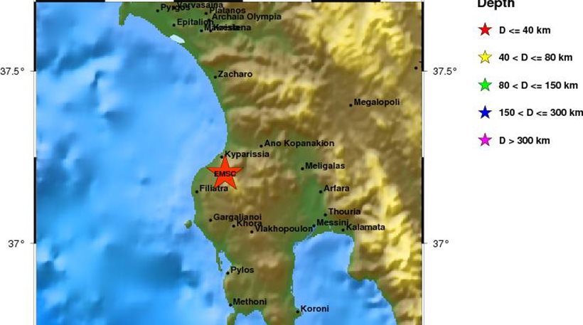 Το Ευρωμεσογειακό Σεισμολογικό Ινστιτούτο έδωσε το σεισμό στα 4,6 Ρίχτερ με επίκεντρο 6 χιλιόμετρα νότια της Κυπαρισσίας και εστιακό βάθος τα 82 χιλιόμετρα.
