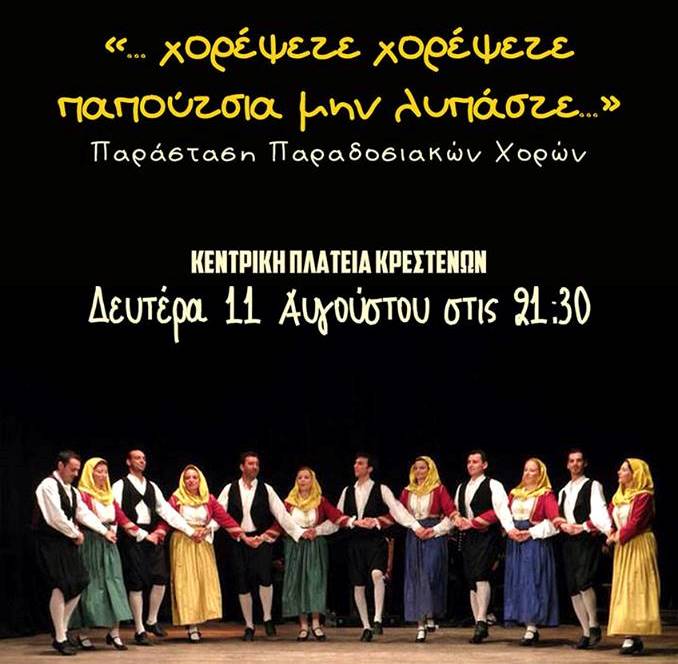 Η παράσταση θα γίνει στην κεντρική πλατεία Κρεστένων και θα ξεκινήσει στις 21:30.