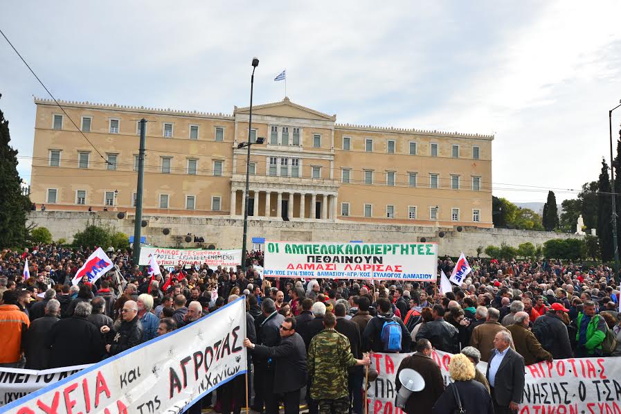 Λαοθάλασσα ξανά μπροστά στη Βουλή, όπου έχουν συγκεντρωθεί, για δεύτερη συνεχόμενη ημέρα μετά το μεγαλειώδες συλλαλητήριο της Παρασκευής, αγρότες από όλη την Ελλάδα για να διαδηλώσουν κατά των σχεδίων της κυβέρνησης για το ασφαλιστικό και το φορολογικό. Με βασικό σύνθημα «στα μπλόκα, στα μπλόκα της αγροτιάς, να σπάσει της κυβέρνησης ο τσαμπουκάς» μαζί τους ενώθηκαν οι διαδηλωτές του ΠΑΜΕ που ξεκίνησαν λίγο μετά τις 11:00 πορεία από την Ομόνοια προς την πλατεία Συντάγματος.
