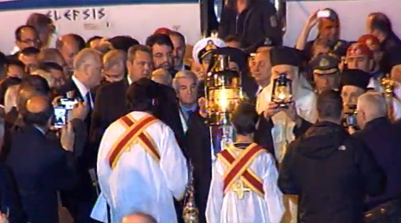 Λίγο μετά τις 8:30 το βράδυ του Μεγάλου Σαββάτου έφτασε στο αεροδρόμιο «Ελ. Βενιζέλος» της Αθήνας το Άγιο Φως από τα Ιεροσόλυμα και έγινε δεκτό με τιμές αρχηγού κράτους.