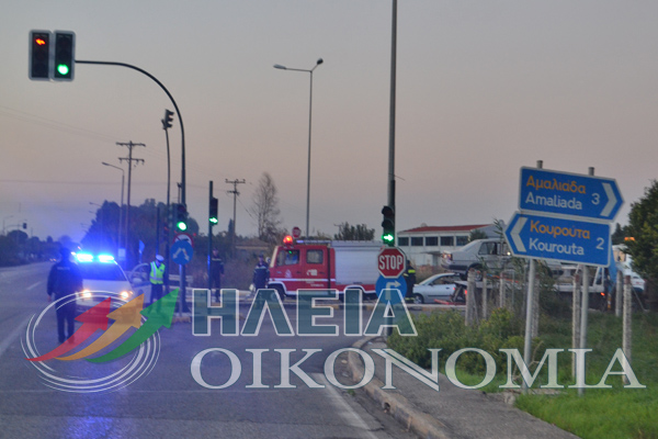 Ι.Χ. μάρκας Fiat κινούμενο απο Πύργο προς Πάτρα συγκρούστηκε με δύναμη πλαγιομετωπικά με Ι.Χ. Volkswagen που εκινείτο απο Κουρούτα προς Αμαλιάδα. Απο την δυνατή σύγκρουση τραυματίστηκε ελαφρά ο συνοδηγός του Fiat ενώ η ηλικιωμένη συνοδηγός του Volkswagen τραυματίστηκε σοβαρά, όπως και ο οδηγός αλλά με πιο ελαφρά τραύματα.