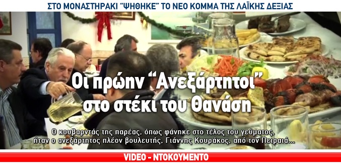 Οι συνδαιτημόνες ήταν κεφάτοι, αλλά η κουβέντα ήταν σοβαρή. Στο μενού και πέρα από τα κεμπάπ ήταν η δημιουργία ενός νέου κόμματος της λαϊκής δεξιάς, αντιμνημονιακού χαρακτήρα. «Ανάδοχοι» οι βουλευτές Κώστας Μαρκόπουλος, Χρήστος Ζώης, Νίκος Σταυρογιάννης, Γιάννης Κουράκος και πολλοί άλλοι εκλεκτοί καλεσμένοι.