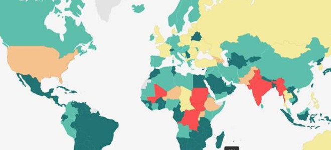 Οι λιγότερο ειρηνικές χώρες σύμφωνα με τη μελέτη είναι η Σομαλία, το Ιράκ, το Νότιο Σουδάν, το Αφγανιστάν και η Συρία.