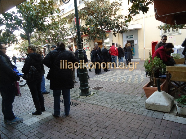 “Ουρά” στο ΑΤΜ της Εθνικής Τράπεζας στον Πύργο.