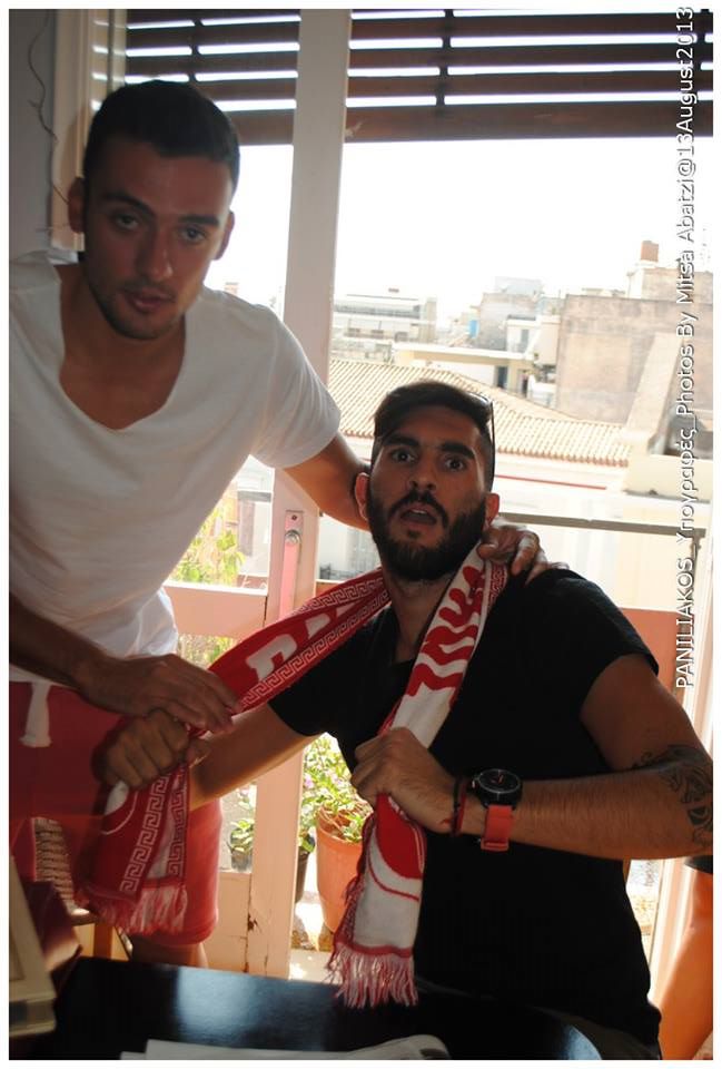 • Στη φωτό – φορώντας το κασκόλ του Πανηλειακού, με άλλο ένα από τα μεταγραφικά αποκτήματα (είχε ανακοινωθεί από τις προηγούμενες μέρες), τον Δημήτρη Μαρτίνο, που το Σάββατο υπέγραψε κι αυτός.