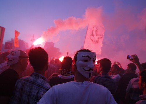 – Δεκάδες χιλιάδες διαδηλωτές το βράδυ Σαββάτου στην πλατεία Ταξίμ όπου η νύχτα έγινε μέρα από τα καπνογόνα.
