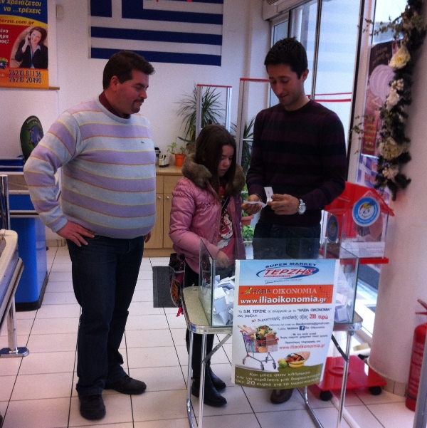 Πραγματοποιήθηκε σήμερα Σάββατο 15/12/2012, στις 13:30 η κλήρωση στο Σ.Μ. ΤΕΡΖΗΣ στην οδό ΡΗΓΑ ΦΕΡΡΑΙΟΥ 59 στον Πύργο για τις 10 δωροεπιταγές  συνολικής αξίας 200 ευρώ (10Χ20ευρώ).