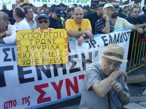 Κάποιοι διαδηλωτές έφτασαν με κρεμάλα στα χέρια για την εργασιακή εφεδρεία.
