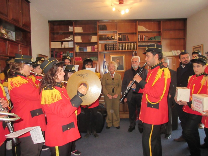 Ο Δήμαρχος Ήλιδας υποδέχτηκε μαζί με τα μέλη της Δημοτικής του αρχής, τους μουσικούς της Φιλαρμονικής, ευχόμενος τα καλύτερα για τις γιορτές, το νέο έτος και την προσπάθεια ανασύστασης που κάνει ο φορέας τους υπό το ΝΠΔΔ «Ο Ηλείος».