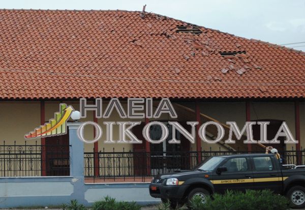 Μεγάλες ζημιές στην Ε.Ο. Πύργου ζημιές απο τον ισχυρό ανεμοστρόβιλο και την έντονη βροχόπτωση που συνέβη σήμερα Πέμπτη, τις μεσημεριανές ώρες στην πόλη του Πύργου και την ευρύτερη περιοχή.
