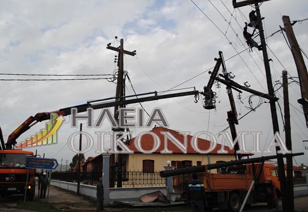 Συνεργείο της ΔΕΗ καθώς και η Π.Υ. Πύργου έχει μεταβεί στο ύψος της διασταύρωσης Λασταιϊκων (κοντά στην επιχείρηση Παναγούλης) αλλά και στην διασταύρωση του Αγ.Ιωάννη ώστε να απομακρύνει κομμένες κολώνες της ΔΕΗ καθώς πραγματικά είναι στον “αέρα” με μεγάλο κίνδυνο.