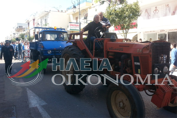 Διαμαρτυρία με τρακτέρ και συνθήματα πραγματοποίησαν στο τέλος της παρέλασης στον Πύργο αγρότες της περιοχής.