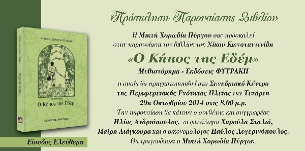 Πύργος: Πρόσκληση παρουσίασης βιβλίου του Νίκου Κωνσταντινίδη