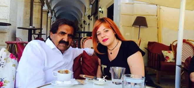Στις φωτογραφίες διακρίνεται ο Εμίρης του Κατάρ ενώ απολαμβάνει τον καφέ του, συνοδεία του πούρου του. Σε μια από αυτές ποζάρει δίπλα του μια νεαρή κοκκινομάλλα, ενώ σε άλλη διακρίνεται να κάθεται απέναντί του μια άλλη γυναικεία παρουσία, επίσης με κόκκινα μαλλιά.