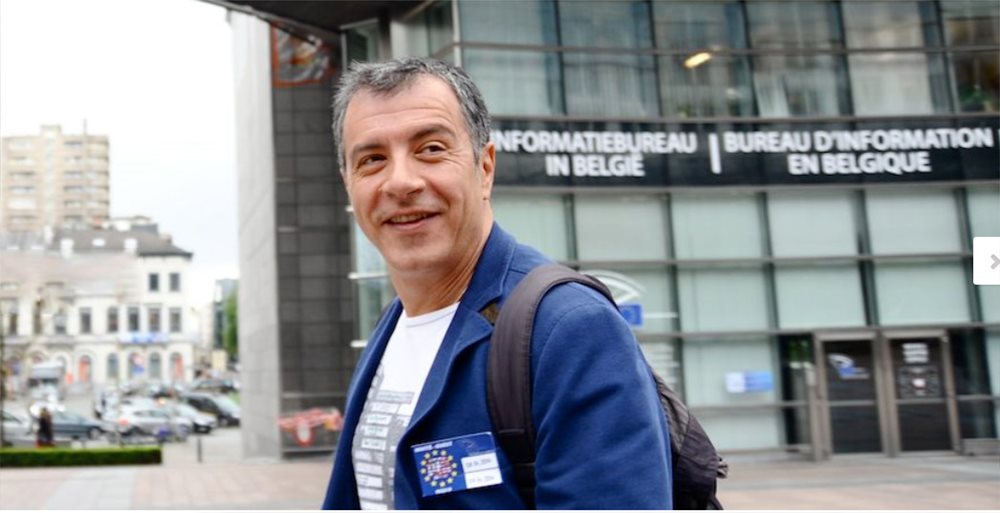 Με ένα γεμάτο σακίδιο ο Σταύρος Θεοδωράκης πέταξε μέχρι τις Βρυξέλλες, για να διαπραγματευτεί την πολιτική ομάδα στην οποία θα συμμετάσχει το κόμμα του στο ευρωπαϊκό κοινοβούλιο, μετά τις επερχόμενες Ευρωεκλογές του Μαΐου.