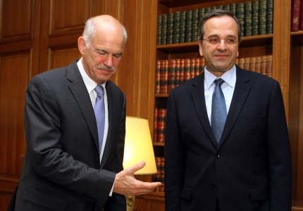 Υποδεχόμενος στο Μέγαρο Μαξίμου τον κ. Σαμαρά, ο Γ. Παπανδρέου τού ευχήθηκε χρόνια πολλά για τα χθεσινά του γενέθλια (έκλεισε τα 60 του χρόνια). «Να κεράσουμε τον κ. πρόεδρο, διότι χθες γιόρταζε, είχε γενέθλια», δήλωσε ο κ. Παπανδρέου απευθυνόμενος στο προσωπικό του Μαξίμου.