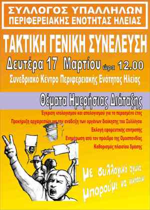 ΣΥΠΕ Ηλείας:Την Δεύτερα τακτική γενική συνέλευση