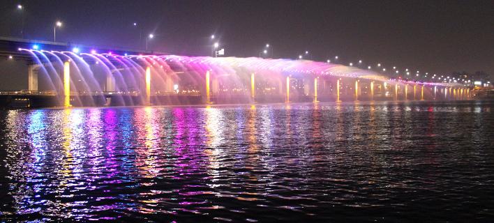 Το μεγαλύτερο συντριβάνι του κόσμου που βρίσκεται πάνω στην γέφυρα Banpo ,μήκους 1.140 μέτρων. Αποτελείται από 380 πίδακες νερού που εκτοξεύουν 190 τόνους νερό το λεπτό και φωτίζονται από 10.000 λαμπτήρες.
