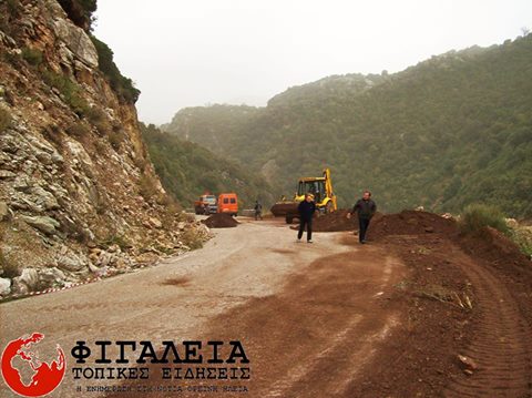 Την Κυριακή έφθασαν στο σημείο των μεγάλων κατολισθήσεων λίγο μετά τα Πετράλωνα προς Περιβόλια Φιγαλείας μηχανήματα έργων από την Π.Ε.ΗΛΕΙΑΣ με σκοπό να δώσουν προσωρινή έστω, λύση στο πρόβλημα που εμφανίστηκε στο σημείο με τις μεγάλες καταπτώσεις βράχων στο οδόστρωμα. Έτσι στο σημείο έγινε επιχωμάτωση του πρανές και διάνοιξη του δρόμου με σκοπό να δημιουργηθεί ένα επιπλέον ρεύμα κυκλοφορίας όσο αυτό ήταν δυνατό και παρά την στενότητα του δρόμου. Έτσι στο ρεύμα προς Πετράλωνα δημιουργήθηκε ένα μεγάλο πρόχειρο ανάχωμα με σκοπό οι πέτρες που πέφτουν να πέφτουν πίσω από αυτό και όχι στο οδόστρωμα αλλά πολύ περισσότερο να απορροφούν την σύγκρουση της πέτρας με το οδόστρωμα. Αυτό όπως προαναφέραμε είναι ένα προσωρινό έργο για να μην κλείσει ο δρόμος καθώς σύμφωνα με την Π.Ε.ΗΛΕΙΑΣ έχουν κοπεί κονδύλια ύψους άνω των 3.000.000ευρώ για παρεμβάσεις στην Επαρχιακή Οδό Θολού – Νέας Φιγαλείας – Επικουρίου Απόλλωνα. Στο σημείο τοποθετήθηκαν πινακίδες σήμανσης και στα δύο ρεύματα ενώ πινακίδες τοποθετήθηκαν και 100μ από αυτό το σημείο σε ένα άλλο το οποίο έχει υποστεί καθίζηση.