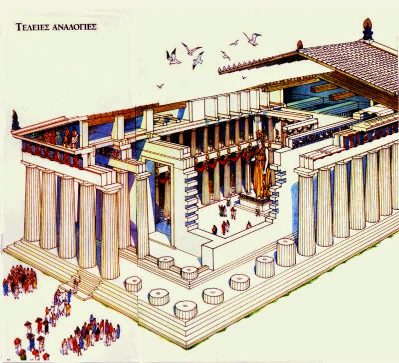 Και το τρίτο εντοπίζεται στις κολώνες του κτίσματος, οι οποίες δεν τοποθετήθηκαν μονοκόμματες, αφού οι αρχαίοι Έλληνες ήξεραν πως για να αντέξουν στους κραδασμούς της γης, θα έπρεπε να τοποθετηθούν σε φέτες, τέλεια εφαρμοσμένες η μία πάνω στην άλλη.