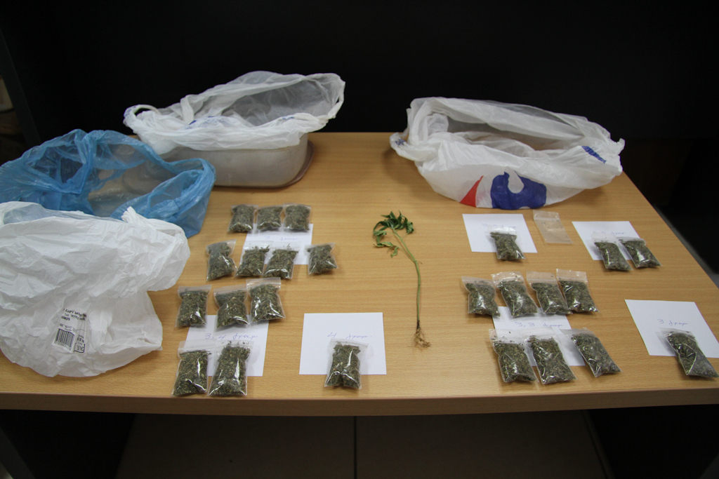 Στη συνέχεια της έρευνας στο προαύλιο χώρο του σπιτιού οι αστυνομικοί βρήκαν ένα φυτό κάνναβής σε ανάπτυξη το οποίο και εκρίζωσαν.
