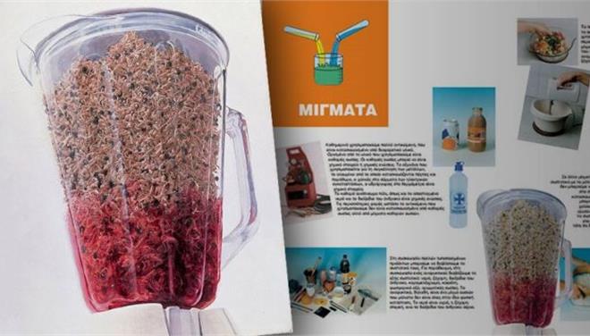 Το σχέδιο βρίσκεται στη σελίδα 19 του βιβλίου με τον τίτλο «Ερευνώ και αποκαλύπτω» και χρησιμοποιήθηκε, μαζί με άλλες εικόνες, για την εικονογράφηση του κεφαλαίου που αναφέρεται στα μίγματα.