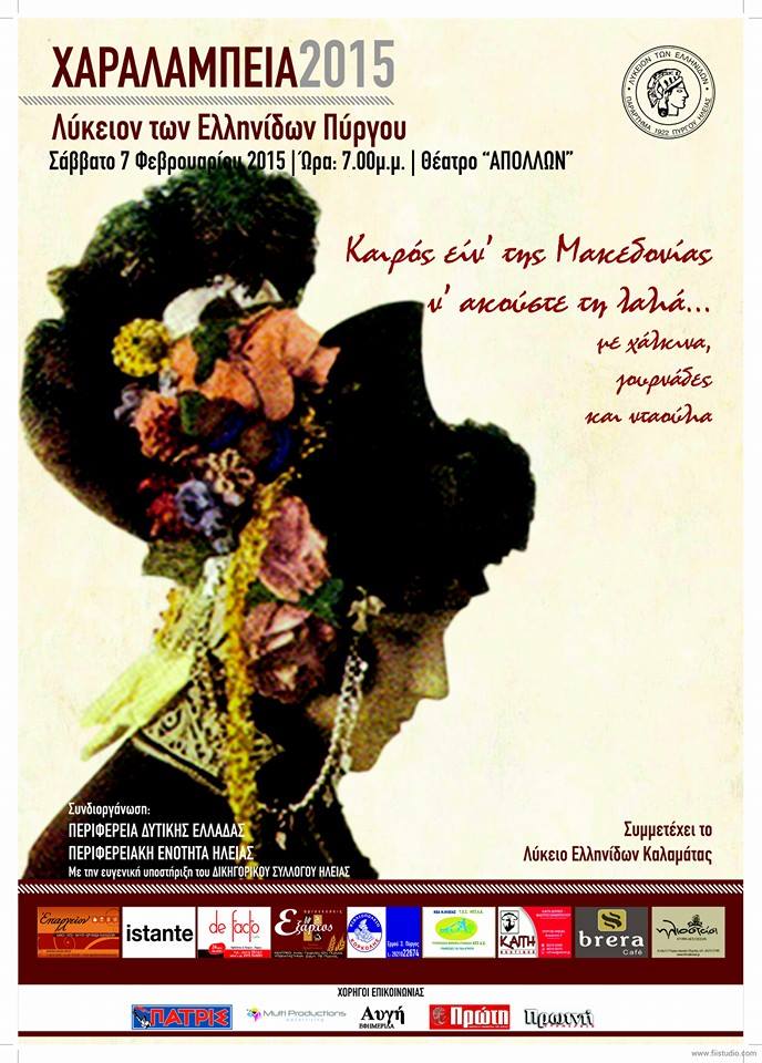Ενόψει την γιορτή του Αγίου Χαραλάμπους την Τρίτη 10 Φεβρουαρίου, πολιούχου της πόλης του Πύργου, το Λύκειο Ελληνίδων διοργανώνει για ακόμα μία χρονιά τα “Χαραλάμπεια 2015”.