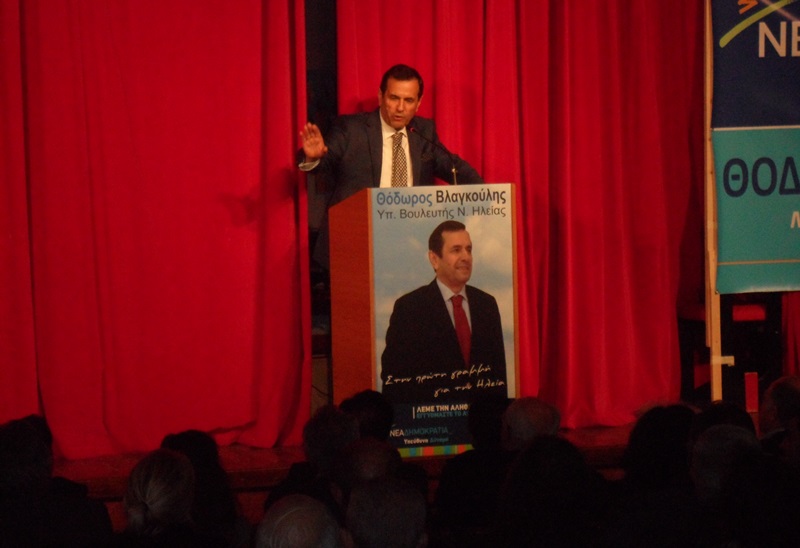 Το απόγευμα της Τετάρτης 21/1/2015 ο υποψήφιος βουλευτής στην Ηλεία με τη Νέα Δημοκρατία κύριος Βλαγκούλης Θεόδωρος έκανε μία δυναμική ομιλία στο Λαζαράκειο Δημοτικό Μέγαρο στην Αμαλιάδα.