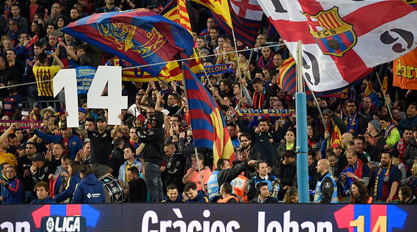 Ανατριχίλα κατά την είσοδο των ομάδων, όπου το «Καμπ Νου» τίμησε τον Γιόχαν Κρόιφ, που έφυγε από τη ζωή σε ηλικία 69 ετών. Το γήπεδο σηκώθηκε στο… πόδι και στο 14ο λεπτό, αφού ο Ολλανδός φορούσε τη φανέλα με το «14» στην πλάτη.
