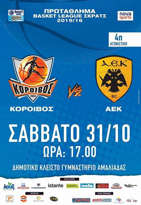 Στο τελικό στάδιο της προετοιμασίας του για τη συνέχεια του πρωταθλήματος και τον μεγάλο αγώνα με την ΑΕΚ που θα γίνει το Σάββατο ώρα 5.00 το απόγευμα στο Δημοτικό κλειστό Αμαλιάδας βρίσκεται ο Κόροιβος.