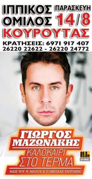 * Ο Γιώργος Μαζωνάκης θα είναι εκεί την Παρασκευή 14 Αυγούστου.