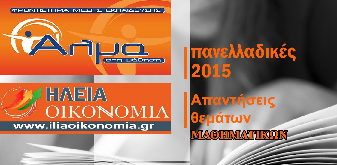 Tο iliaoikonomia.gr σε συνεργασία με το φροντιστήριο Μέσης Εκπαίδευσης «Αλμα» Θα είναι κοντά στους υποψηφίους των Πανελλαδικών εξετάσεων 2015. Δείτε τα θέματα, τις απαντήσεις και τα σχόλια των έμπειρων καθηγητών του φροντιστηρίου «Αλμα».