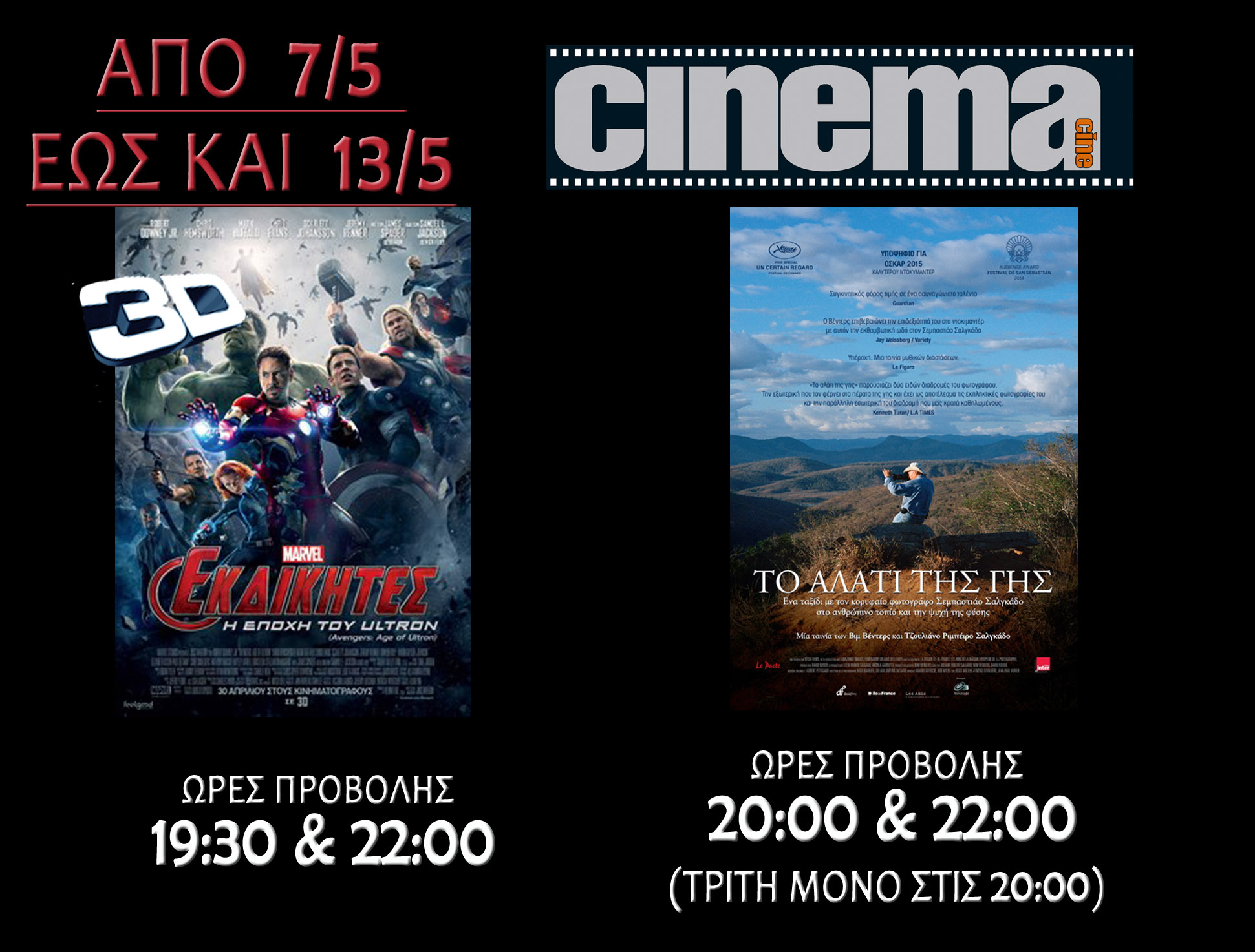 [1]“ΟΙ ΕΚΔΙΚΗΤΕΣ: Η ΕΠΟΧΗ ΤΟΥ ULTRON (3D)”–> ΩΡEΣ 19:30 & 22:00