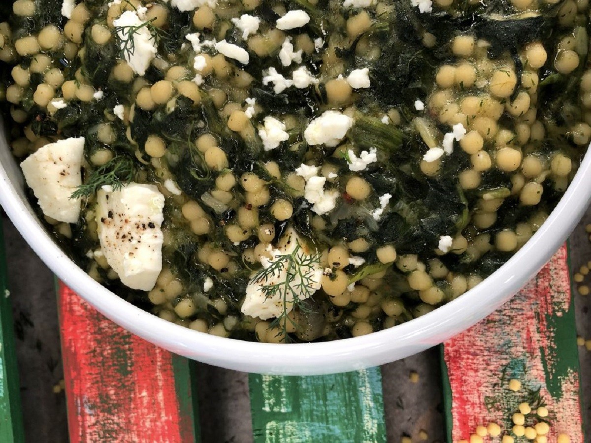 All time classic σπανακόρυζο με μελωμένο κουσκούς σε ένα πιάτο που θα λατρέψουν ακόμα και τα παιδιά. Και το λάδι του άνηθου του δίνει από πάνω άλλη ομορφιά. Με βαρελίσια φέτα εννοείται. Και μπόλικο ζυμωτό ψωμί.