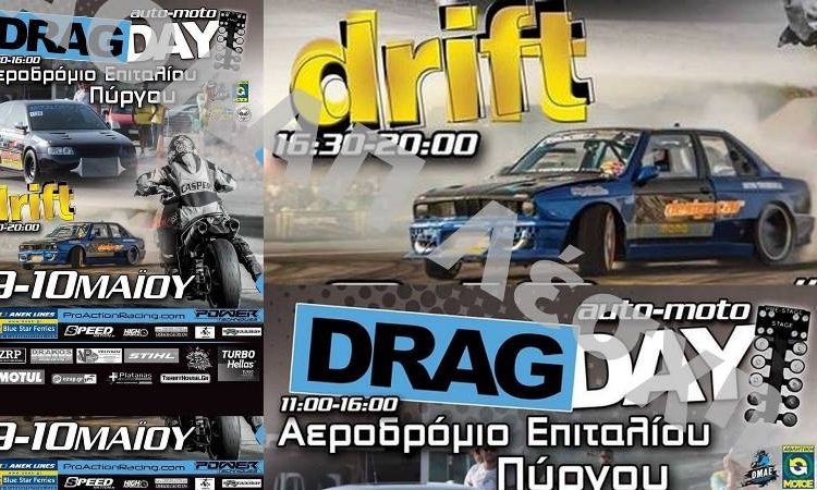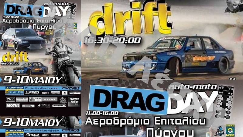 Η διήμερη διεξαγωγή του DragDay και Drift στο Αεροδρόμιο Επιταλίου Πύργου αναβάλλεται για 2 εβδομάδες και θα πραγματοποιηθεί στις 09-10 Μαϊου έπειτα απο ενημέρωση που πραγματοποιήθηκε.
