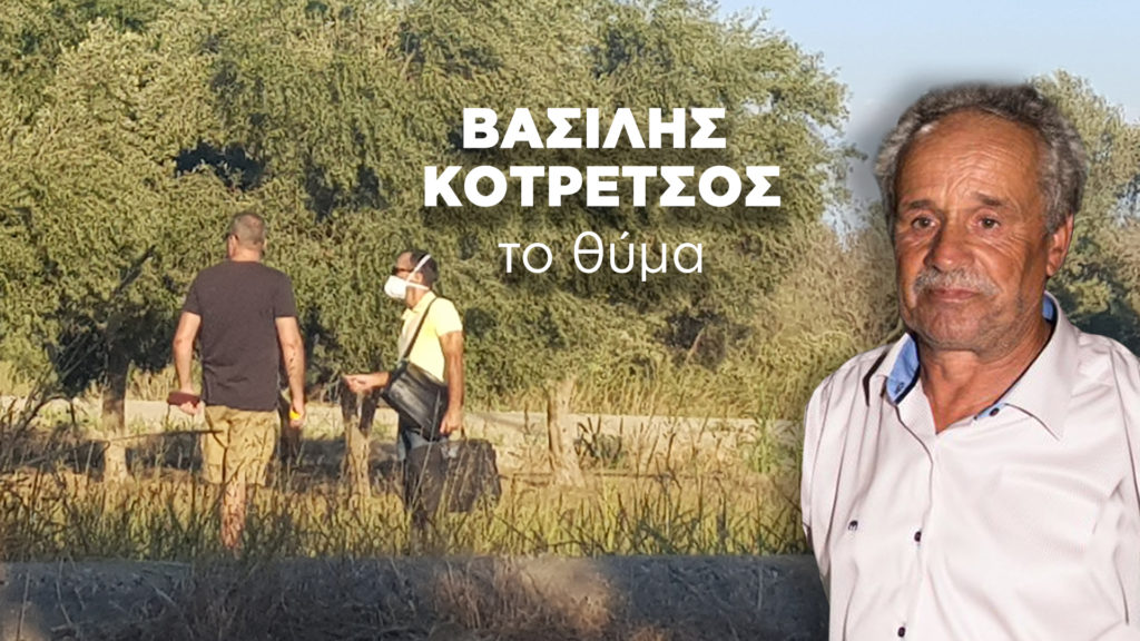 Ο Βασίλης Κοτρέτσος βρέθηκε νεκρός το απόγευμα της Κυριακής 16 Αυγούστου 2020 στην οδό Σκουροχωρίου – Κατακόλου σε αρδευτικό κανάλι, βάθους δυο μέτρων.